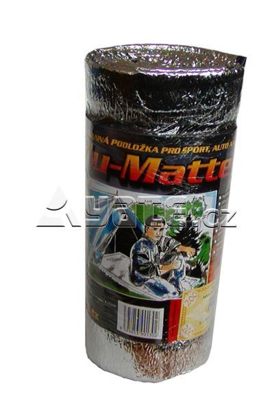 Karimatka s reflexní Alu folií. Používá se fólií nahoru, protože foile odráží zpět vyzařované teplo.