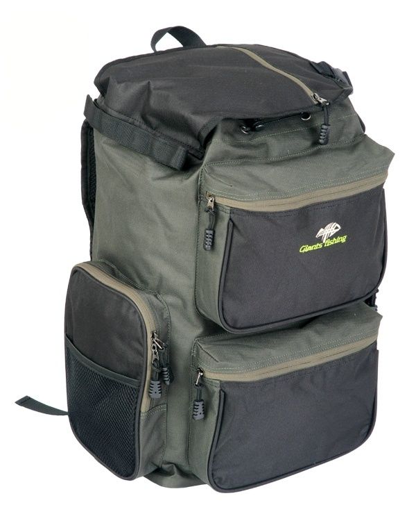 Batoh je vyroben z nylonu 600D, v elegantním dvoubarevném zeleno-černém designu. Tento zesílený materiál, který je z vnitřní části pogumovaný zabrání promoknutí batohu a je snadno omyvatelný. Dvě přední kapsy, které jsou na klasické zipy o rozměru 26x18cm. Další dvě boční kapsy jsou určeny k vsazení prutů, které lze ve vrchní části jednoduše uchytit popruhy. Uvnitř batohu lze snadno uchytit další tři pruty. Vrchní část batohu obsahuje další praktickou kapsu na zip, která je vhodná například na doklady. Spodní část a zádová je vyztužena, díky tomu drží požadovaný tvar. Batoh má silně polstrované popruhy, které mají šířku 8,5cm a díky tomu jsou maximálně pohodlné. Všechny zipy jsou osazeny prodlouženými úchytkami a díky tomu usnadňují rychlé a snadné rozepnutí kapes.