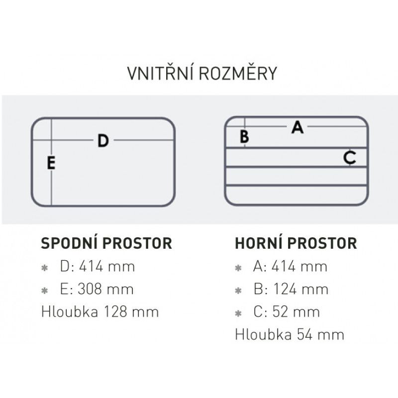 Kufr je vyroben z proti-nárazovému polymeru. V horním úložišti jsou drážky do kterých se dají vložit přepážky a tím využijete každý koutek či škvírku pro vaše náčiní. Kufr je vyroben z proti-nárazovému polymeru. V horním úložišti jsou drážky do kterých se dají vložit přepážky a tím využijete každý koutek či škvírku pro vaše náčiní. Spodní úložiště obsahuje děliče které také můžete nastavit dle svého uvážení. Horní kryt je uzamykán dvojitým zámkem pro zabránění náhlému a nečekanému otevření kufru. Železné zámky v předu jsou z nerezové oceli proti rzi a opotřebování. Ze zdola kufru je guma proti klouzání na hladkém povrchu. Do kufru lze vložit krabičky typu SFC LL, SFC F, WG 9, WP 3, VS 820ND (NDM) a VS 4060. Rozměry: 48 × 35,6 × 18,6 cmObecné nařízení o bezpečnosti produktů (GPSR), Regulation (EU) 2023/988