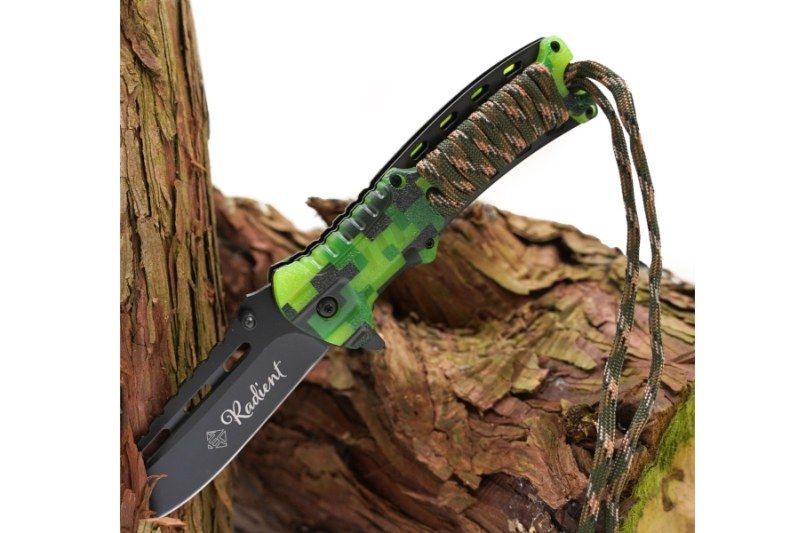 Popis produktu Nůž RADIENT s křesadlem a provázkem Maskáčový