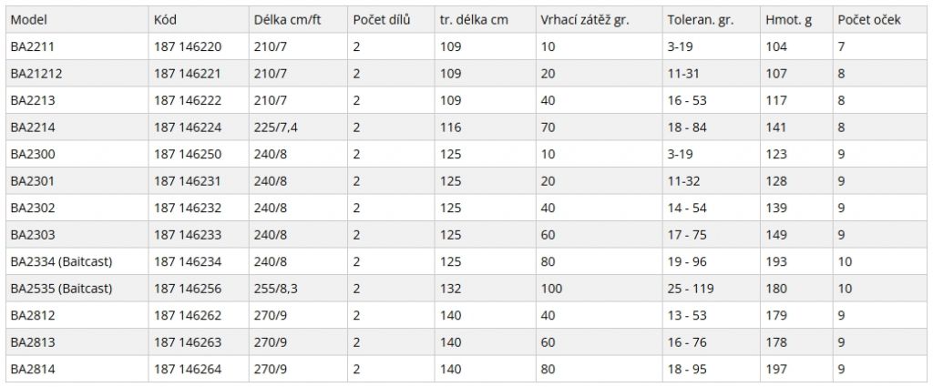 Popis produktu SPORTEX BLACK ARROW G-4 Spin BA2300 240cm 10g