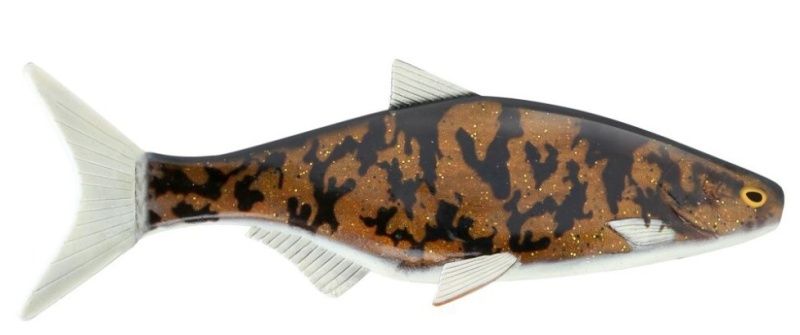 Velmi realistická imitace plotice, v životní velikosti. Pomalu se potábí a imituje zraněnou rybku. Vhodnou kombinací je patentový systém pro sestavování jiggových nástrah R.I.P. Multi-Depth Screw systém (RMDSSxx).